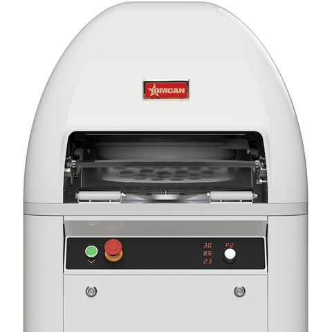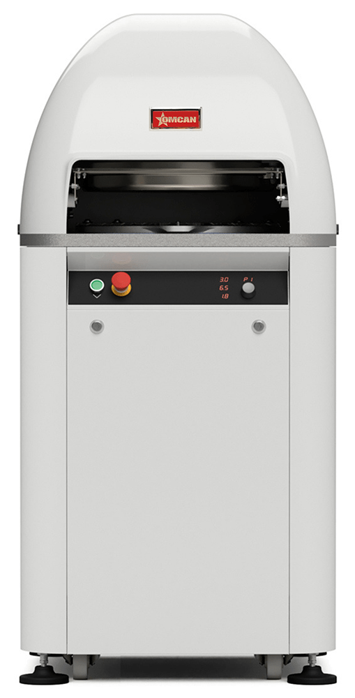 Specifications: (BE-IT-0015A-1P) Trento Bun Rounding Divider, automatic, 5.3 - 12.7 oz., (15) pieces, hydraulic, (2) pressing cylinders, (1) cutting cylinder, (1) rounding cylinder, store up to (9) different programs, knife cleaning button, 220v/60/1-ph, NEMA 6-20P, cETLus, ETL-Sanitation, Made in Italy