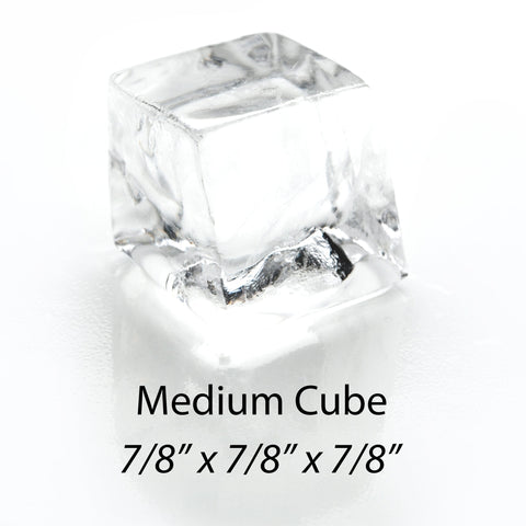 This ice machine makes half or full-sized, medium cubes. The official dimensions for these half-sized cubes are .9” x .9” x .4”, and the official dimensions for the full-sized cubes are .9” x .9” x .9”. Cube ice is the classic ice shape; they’re perfect for cooling mixed or carbonated drinks. Cube ice is also used in ice displays and a variety of other foodservice operations.